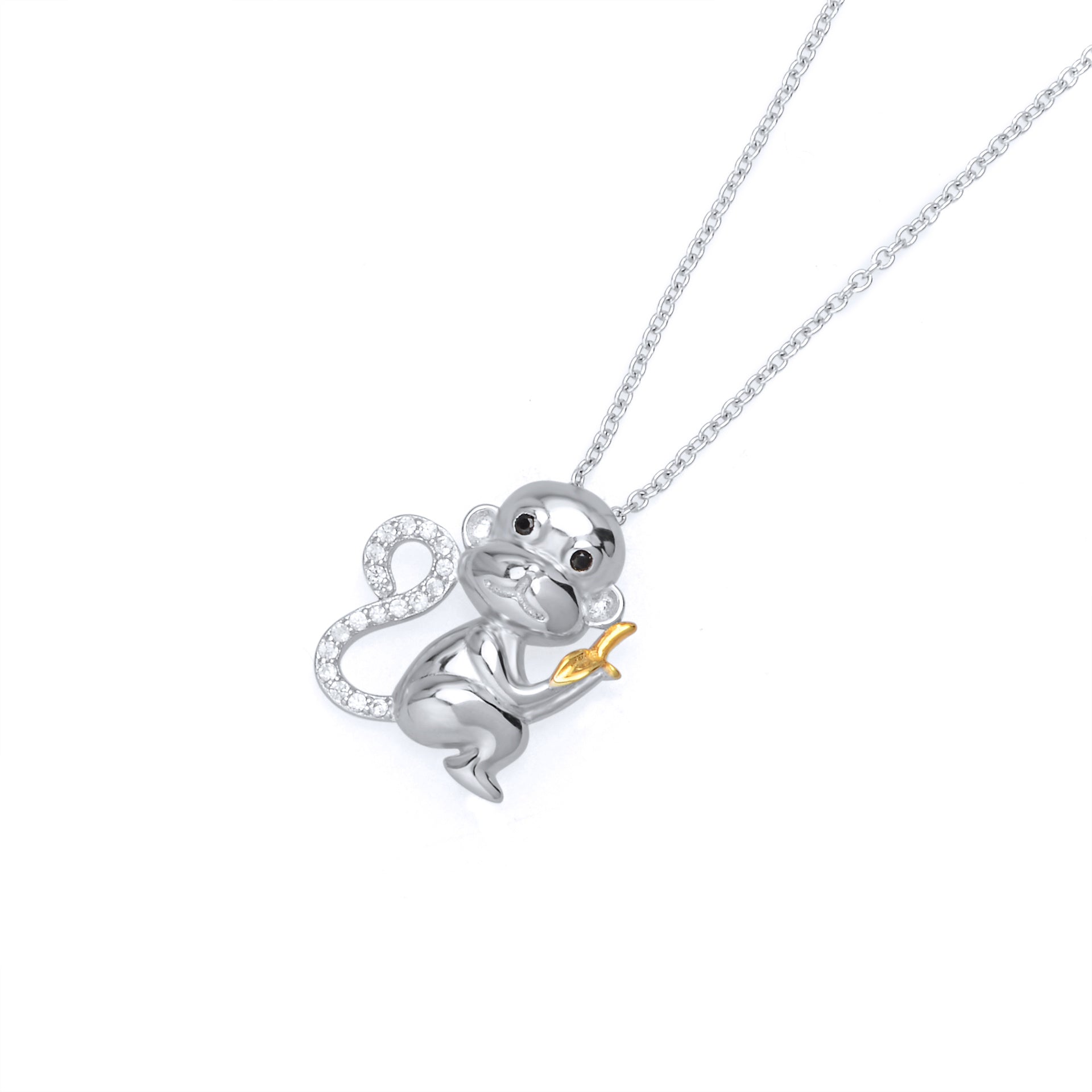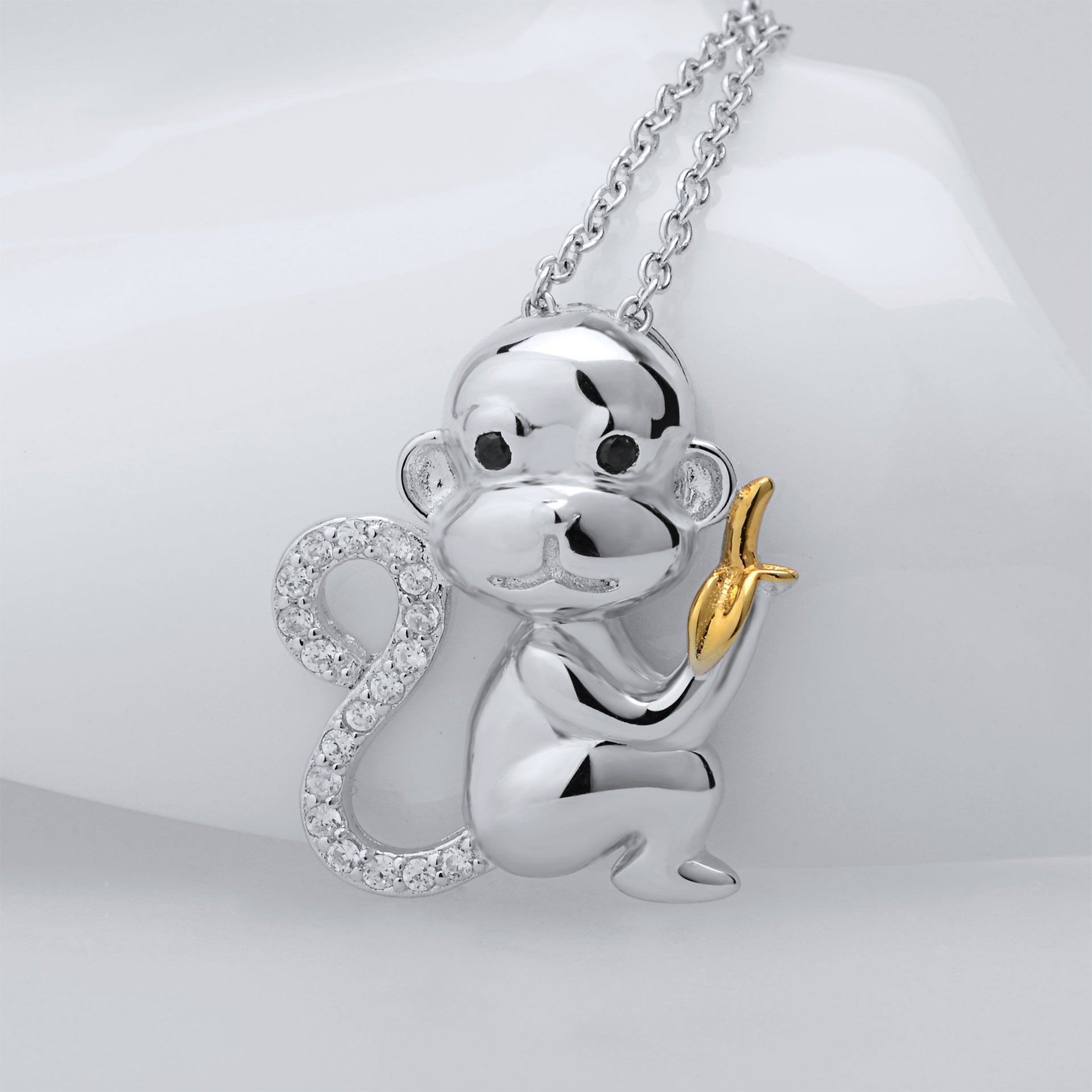Monkey Eating Banana Pendant 925 Silver Necklace