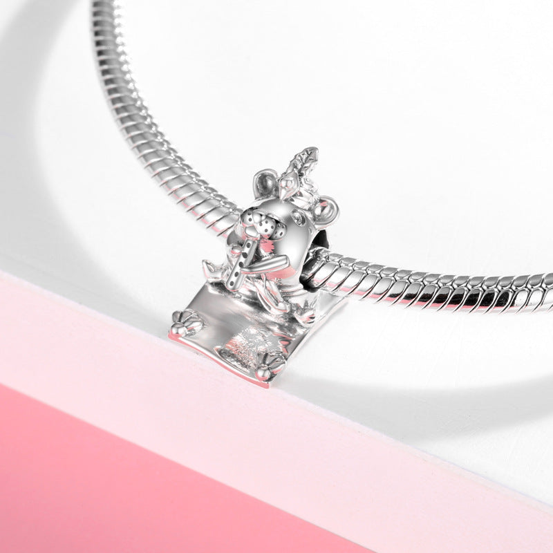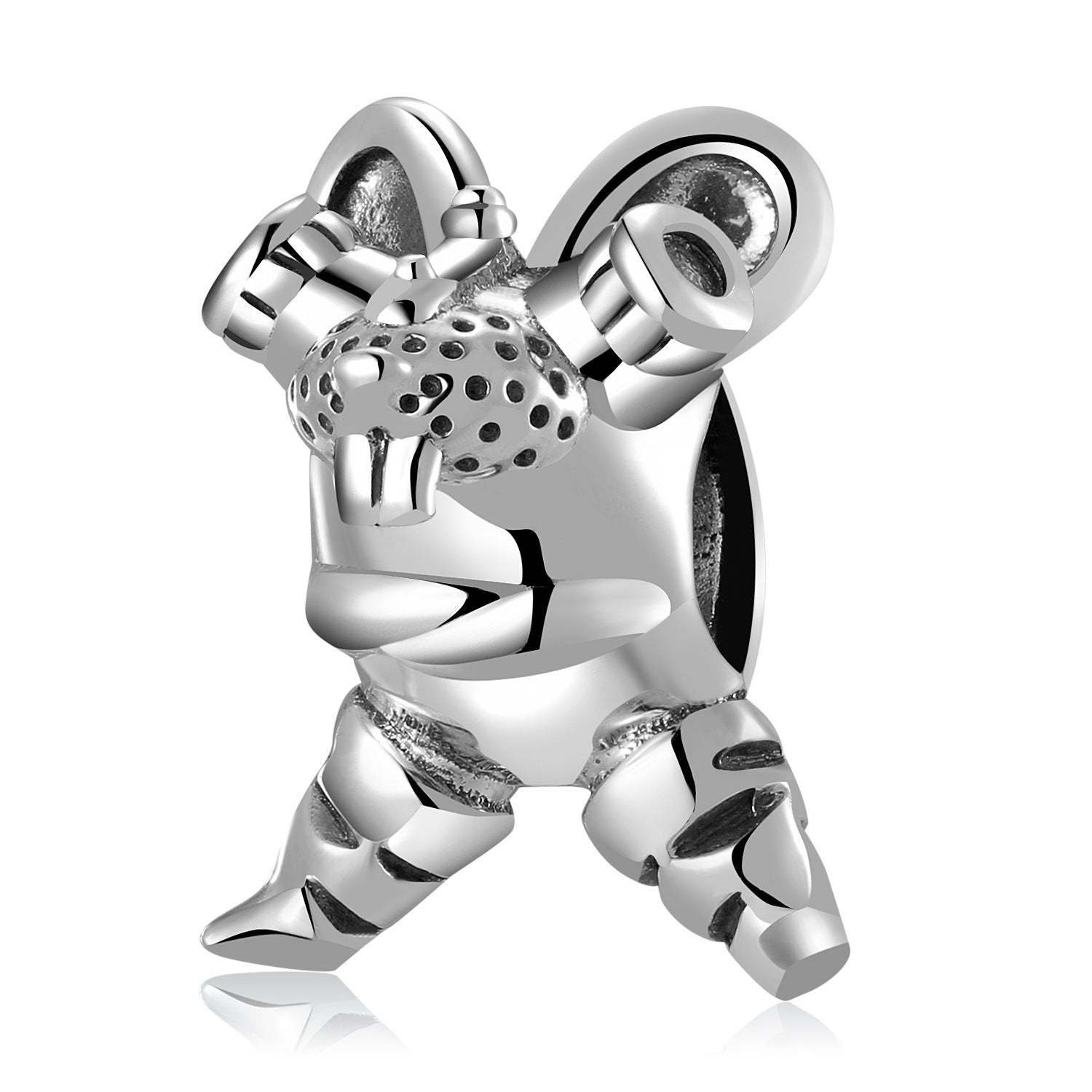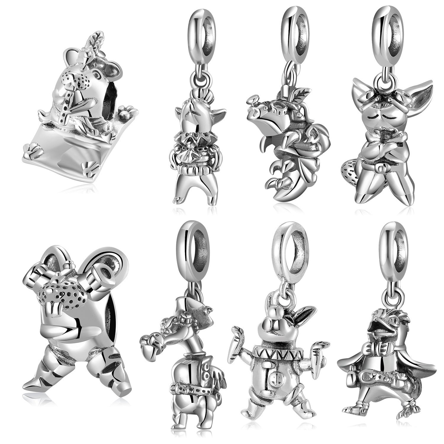 Plain Silver Adventure Animal Rabbit Shark Pelican Beaded Pendant S925 Sterling Silver Girl Bracelet Diy Accessories